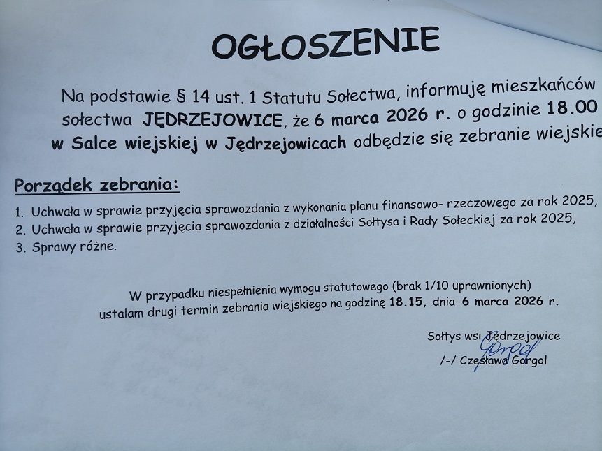 OGŁOSZENIE O ZEBRANIU WIEJSKIM